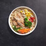 To create a delicious, Japanese-style ramen in the Tonkotsu tradition, our chefs add white meat chicken, authentic ramen noodles, and crisp vegetables to a rich, pork-based broth. It’s a hot and delicious meal that’s full of flavor and warms your soul.