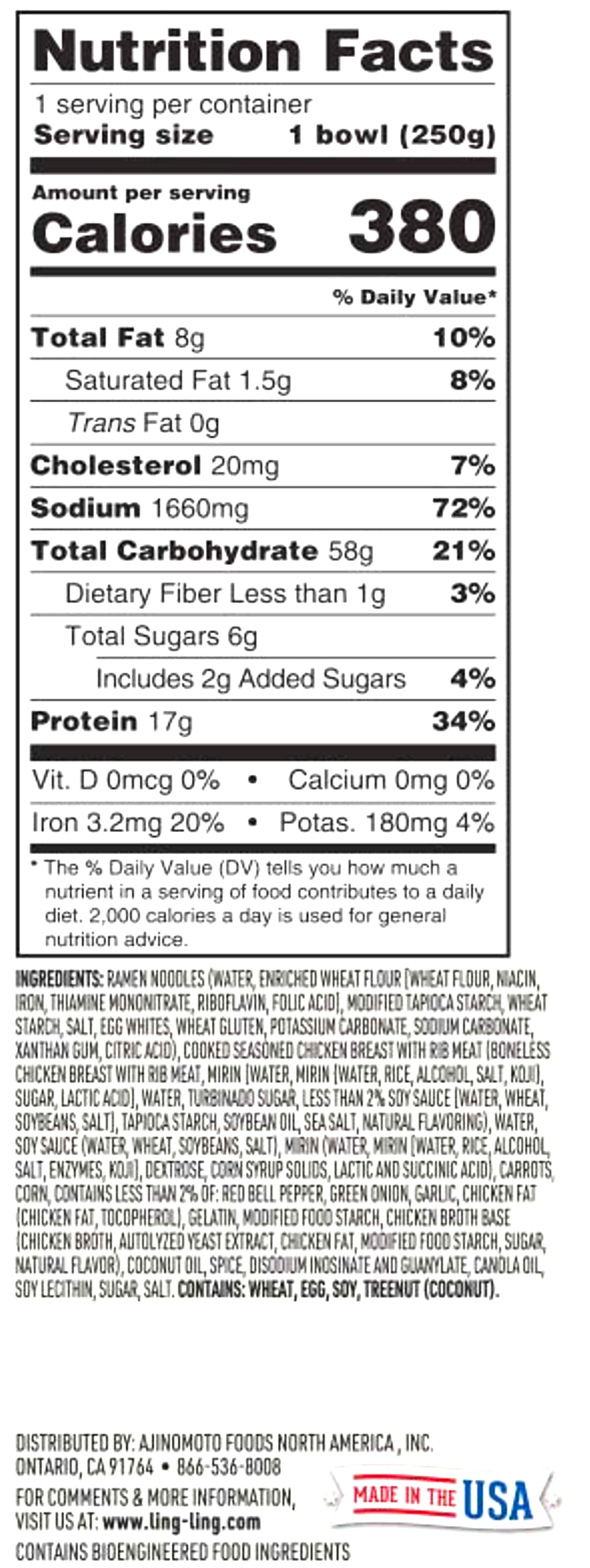 To make a Shoyu Chicken Ramen that tastes like it came from a Tokyo noodle house, our expert chefs combine perfectly textured noodles, tender white meat chicken, crisp green onions, corn, carrots, and red peppers in a traditional Japanese-style soy sauce-based broth.